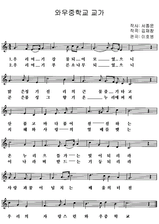 와우중학교 교가